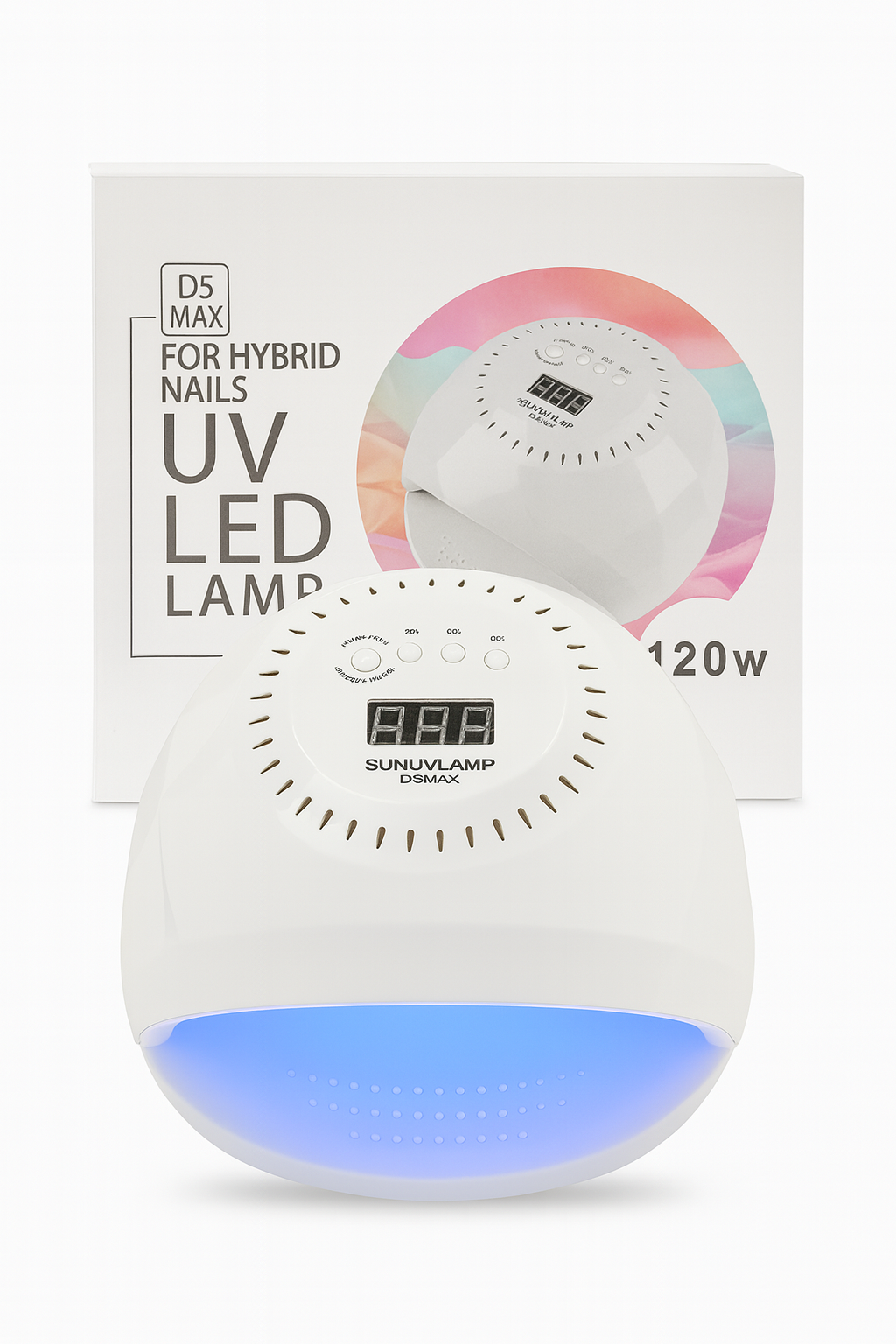 La Lámpara UV LED Profesional 120W D5 Max es el aliado ideal para quienes aman la manicura impecable desde casa o en su salón. Con tecnología avanzada, seca y fija esmaltes en tiempo récord, garantizando un acabado brillante y duradero.