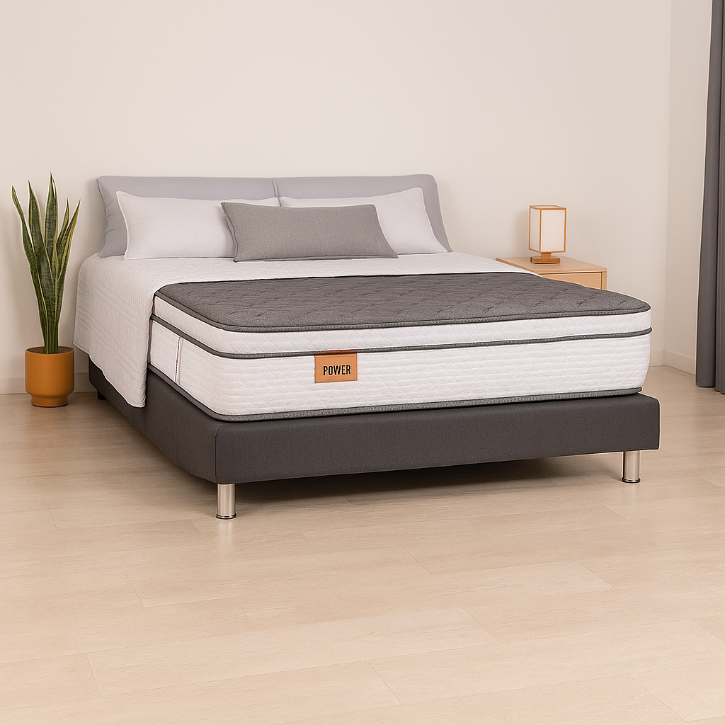 El Colchón Crux Power está diseñado para quienes buscan descanso profundo y soporte superior. Con 30 cm de altura, firmeza media-alta y una capacidad de hasta 120 kg por persona, ofrece la combinación perfecta entre suavidad y estabilidad.